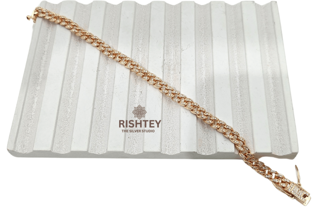 92.5 Sterling Silver Gold Plated Curb Chains Bracelet