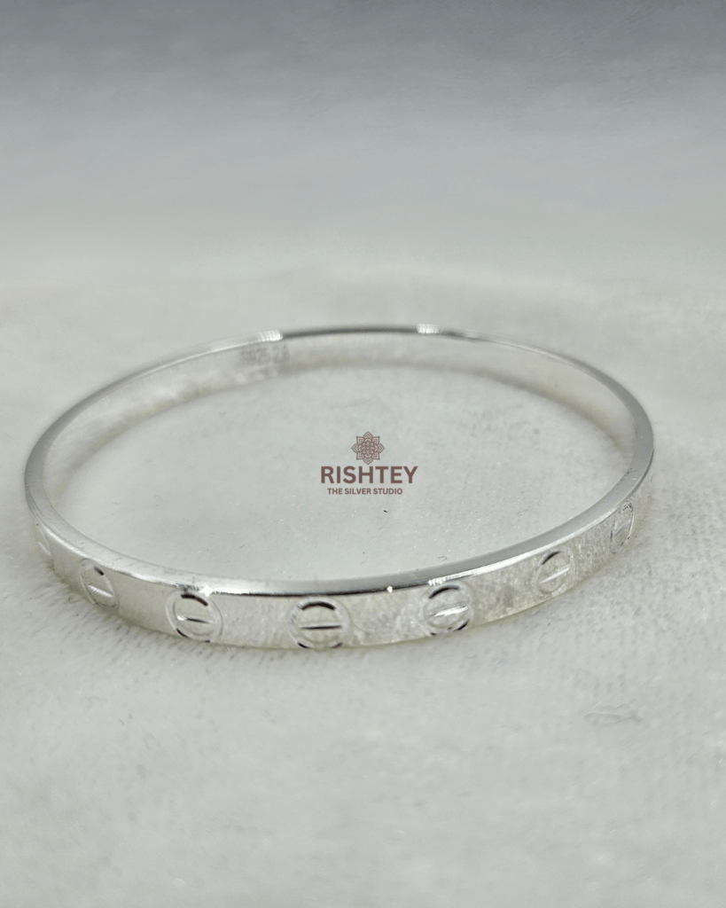 Screw Luxury Silver Cubic Zirconia Stainless Steel Cuff Kada