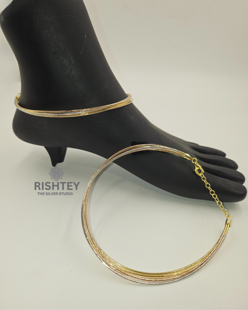 92.5 Sterling Silver Rose Gold Plated 3 Tone Kada Style Anklets