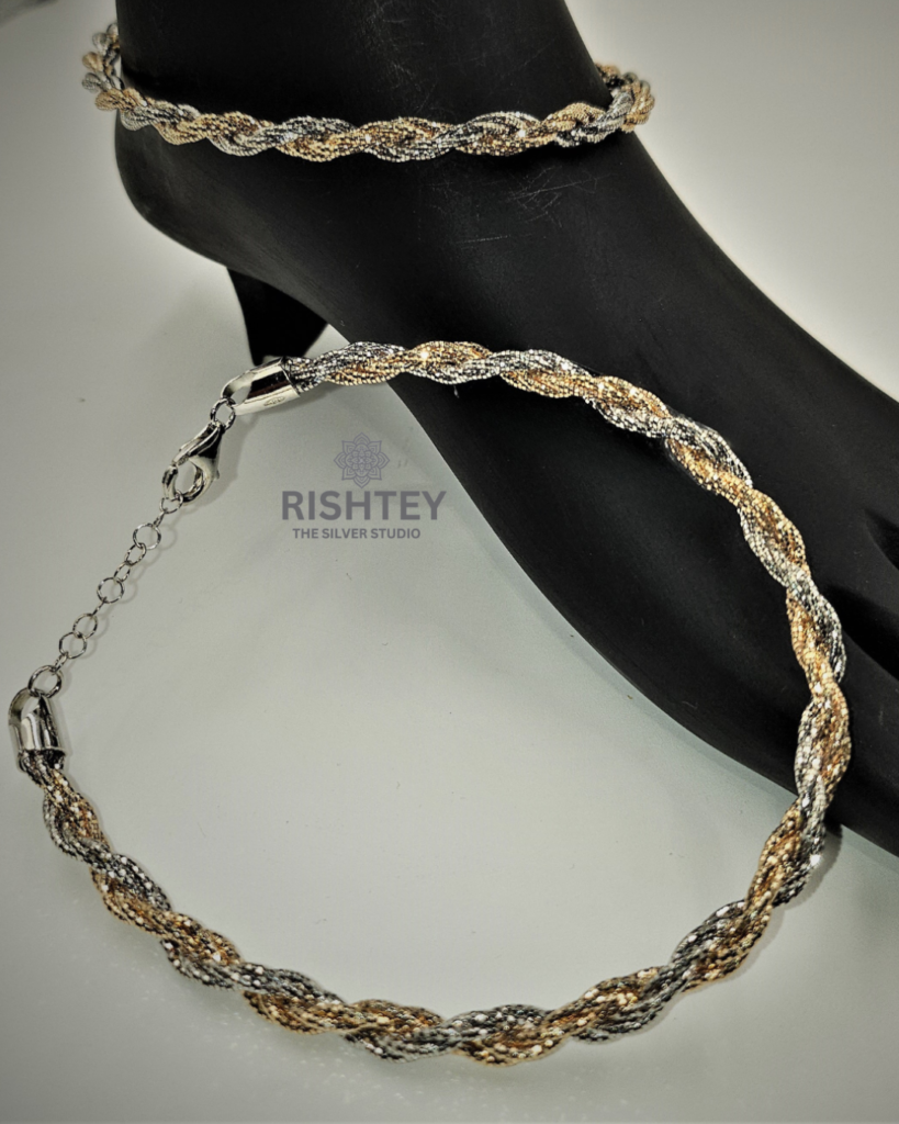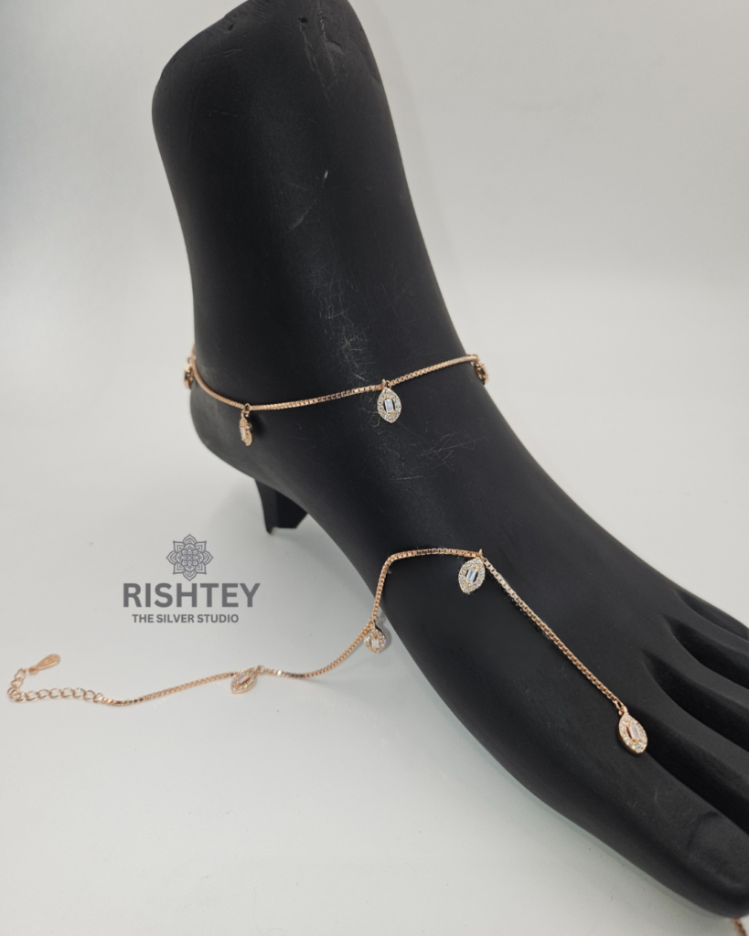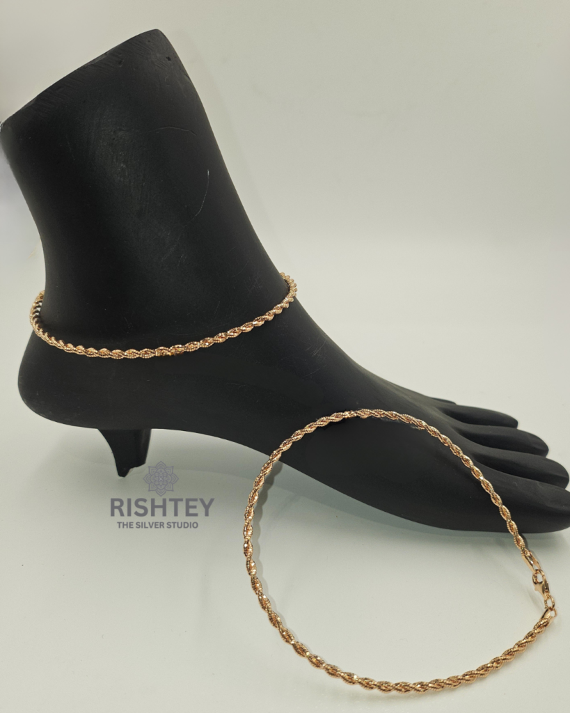 92.5 Sterling Silver Rose Gold Silver Anklets