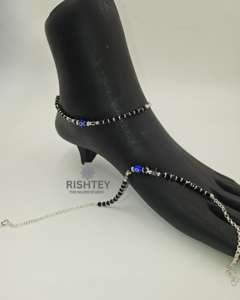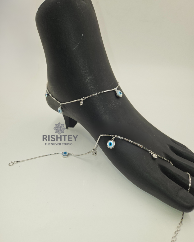 92.5 Sterling Silver With Hanging Evil Eye Anklets