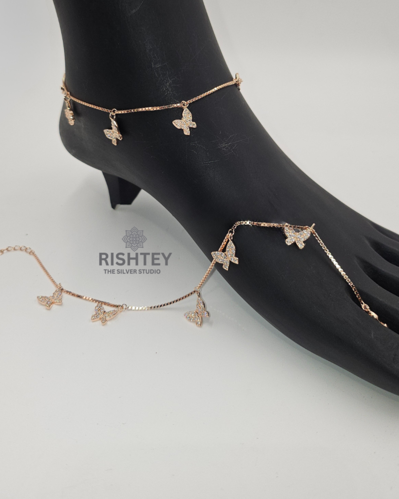 92.5 Sterling Silver Rose Gold Hanging Butterfly Anklets